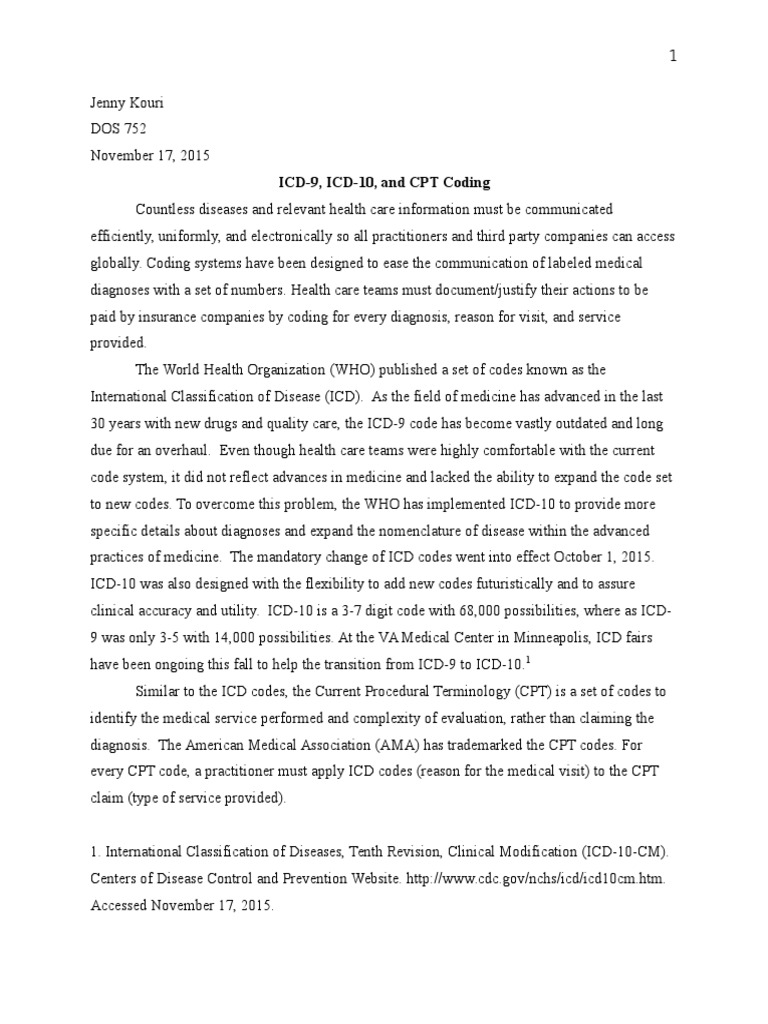 30 years with new drugs and quality care, the ICD-9 code has become vastly outdated and long