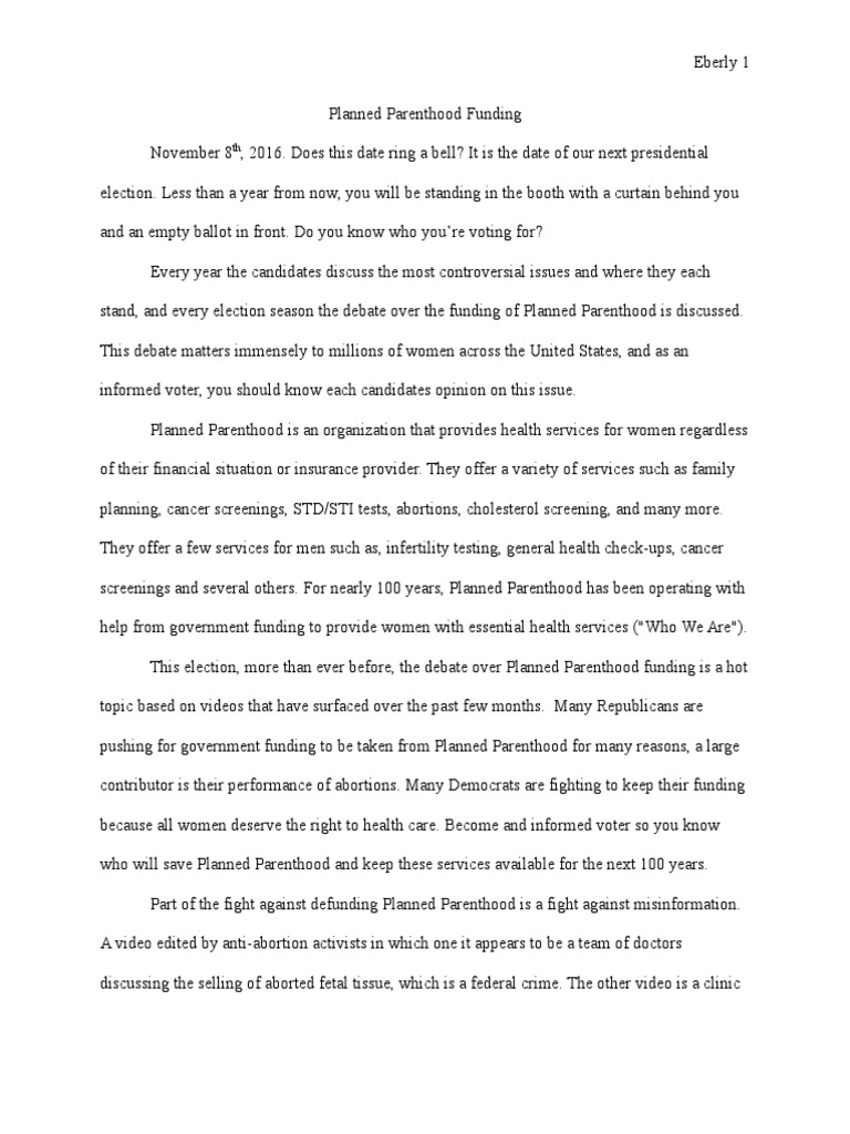 stand, and every election season the debate over the funding of Planned Parenthood is discussed.