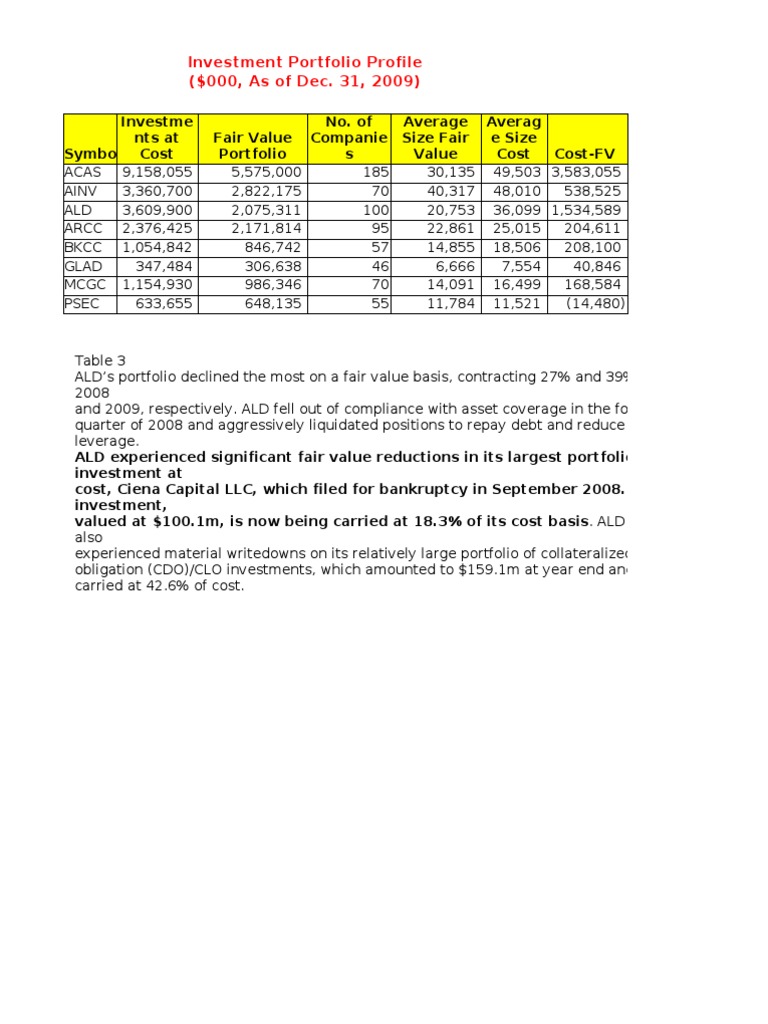 ALD’s portfolio declined the most on a fair value basis, contracting 27% and 39% in
