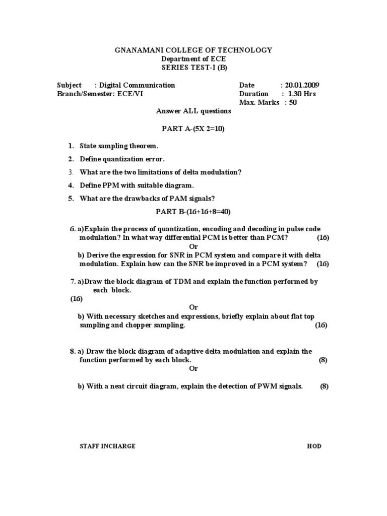 6. a) Draw the block diagram of PCM and explain the function performed by