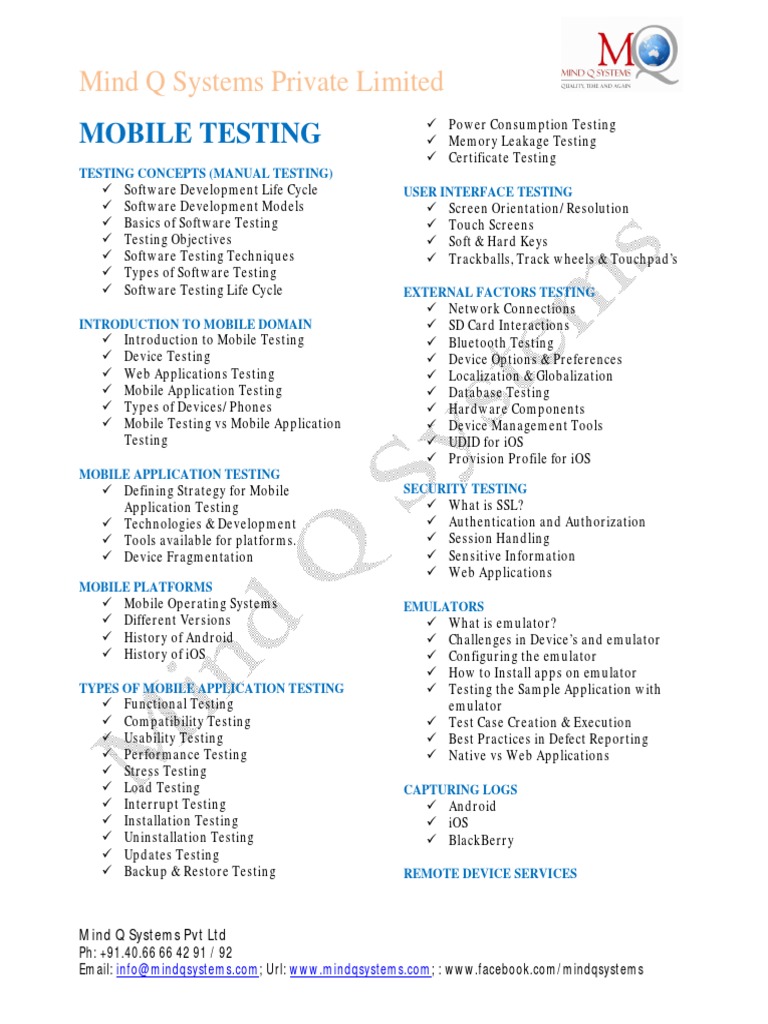 Email: info@mindqsystems.com; Url: www.mindqsystems.com; : www.facebook.com/mindqsystems