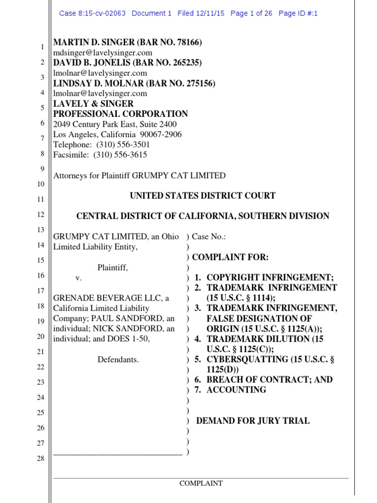 Attorneys for Plaintiff GRUMPY CAT