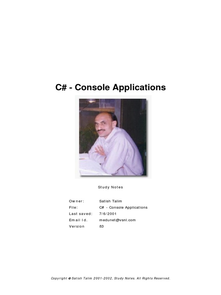 Copyright Satish Talim 2001-2002, Study Notes. All Rights Reserved.