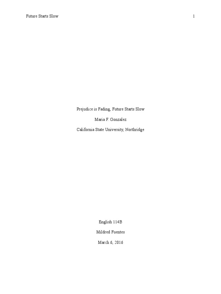 Prejudice is Fading, Future Starts Slow