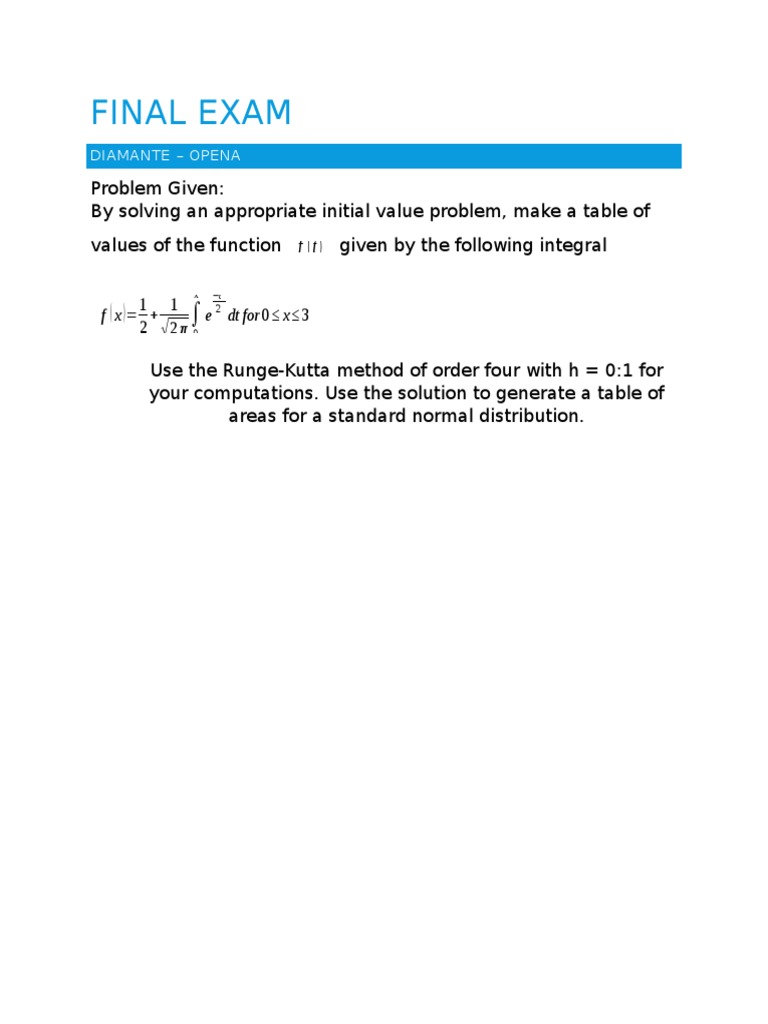 Use the Runge-Kutta method of order four with h = 0:1 for