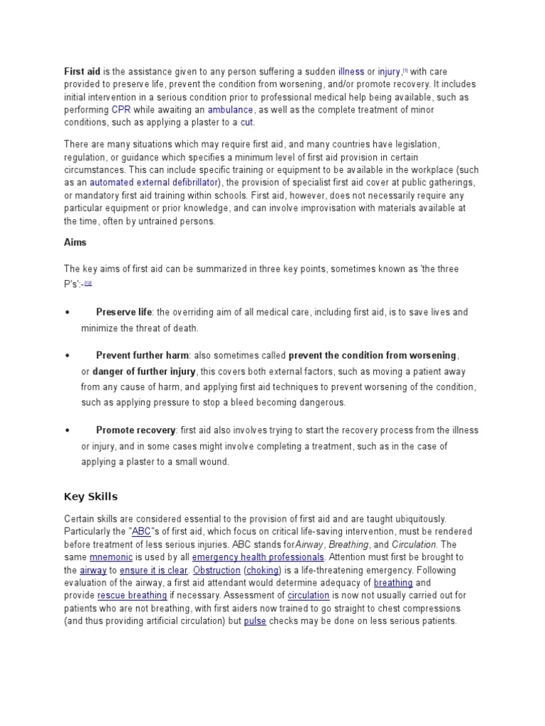 or mandatory first aid training within schools. First aid, however, does not necessarily require any