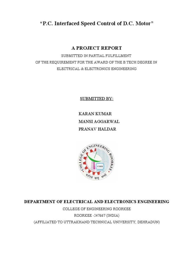 would like to express our gratitude to the other members of Electrical Department: Prof. Sanjay