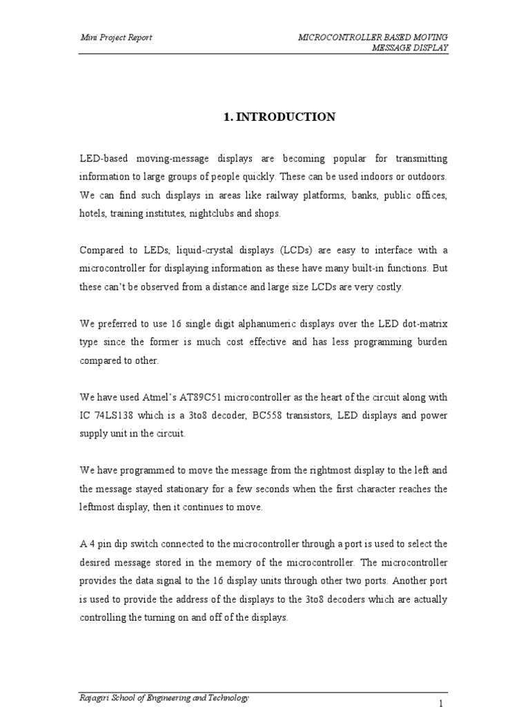 Mini Project Report MICROCONTROLLER BASED MOVING