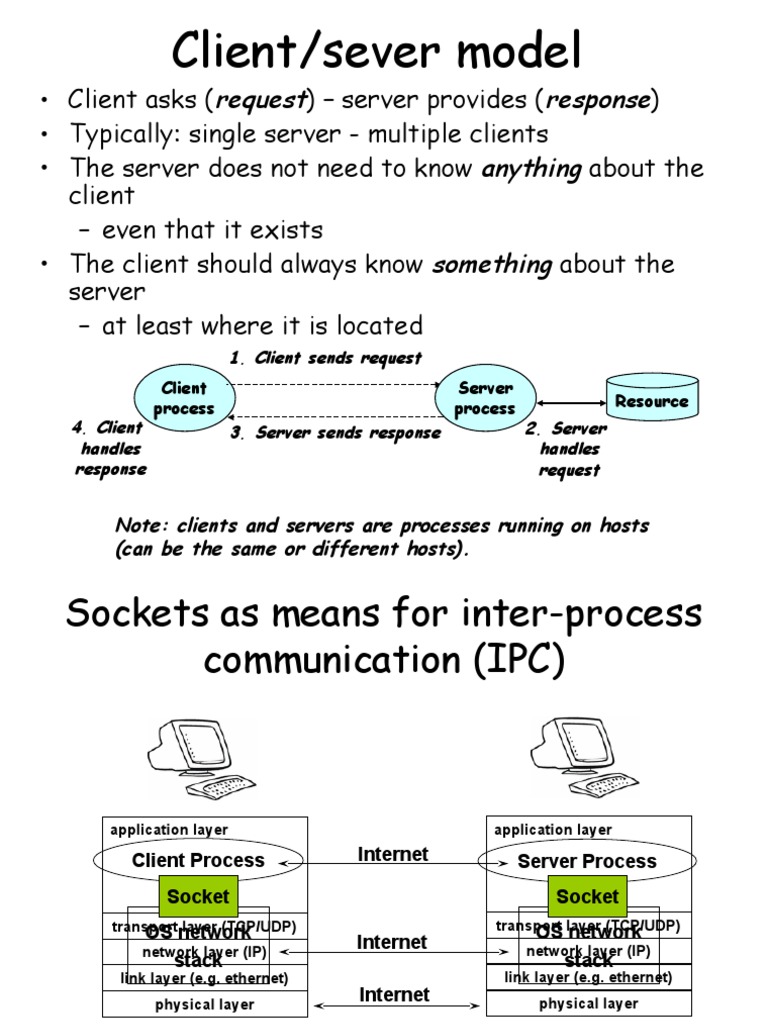 Note: clients and servers are processes running on hosts