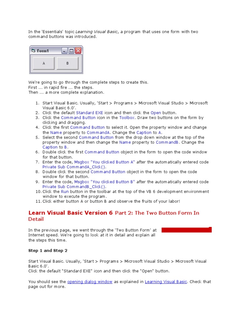 Learn Visual Basic Version 6 Part 2: The Two Button Form In