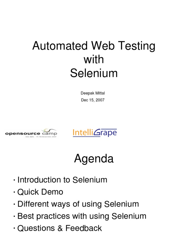 • Best practices with using Selenium