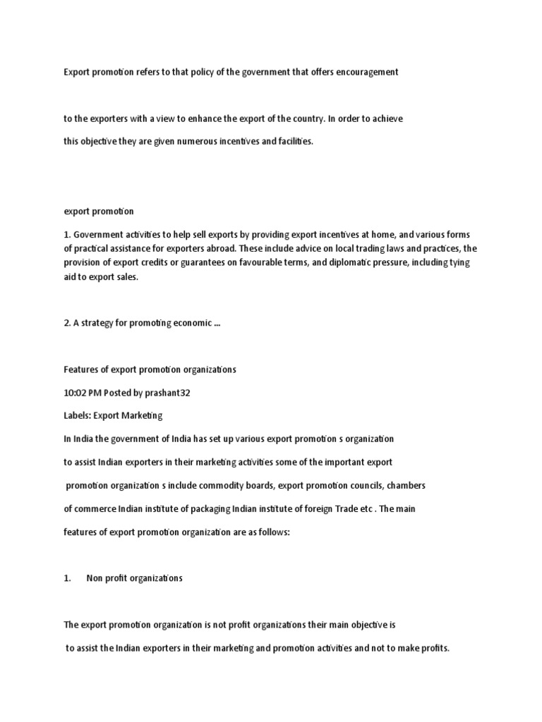 and other exclusive benefits for the growth of export. As a part of export promotion drive,