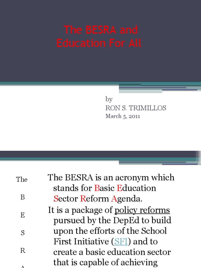 POLICIES, PROGRAMS AND PROJECTS TO ACHIEVE EFA