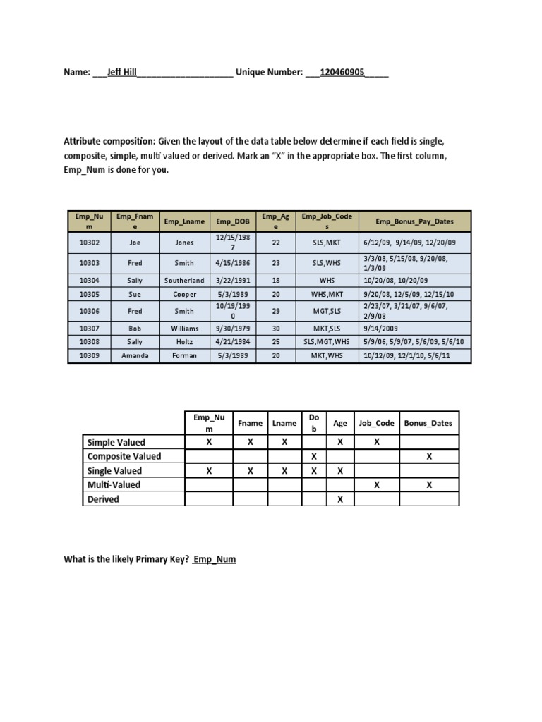 composite, simple, multi valued or derived. Mark an “X” in the appropriate box. The first column,