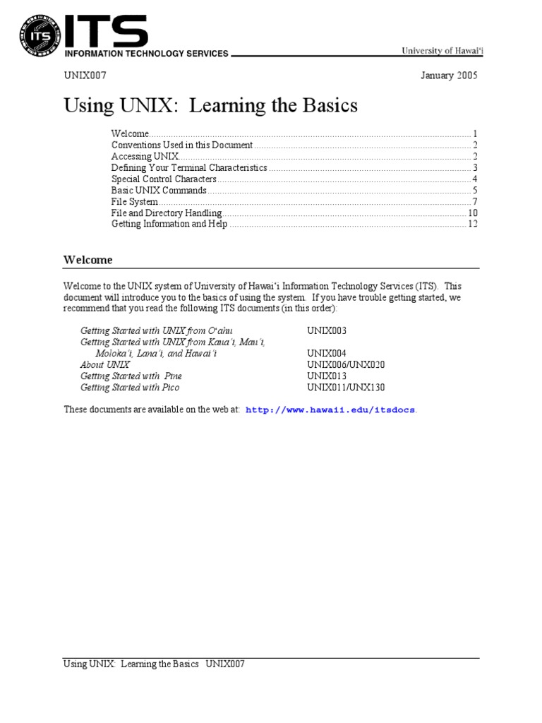 These documents are available on the web at: http://www.hawaii.edu/itsdocs.
