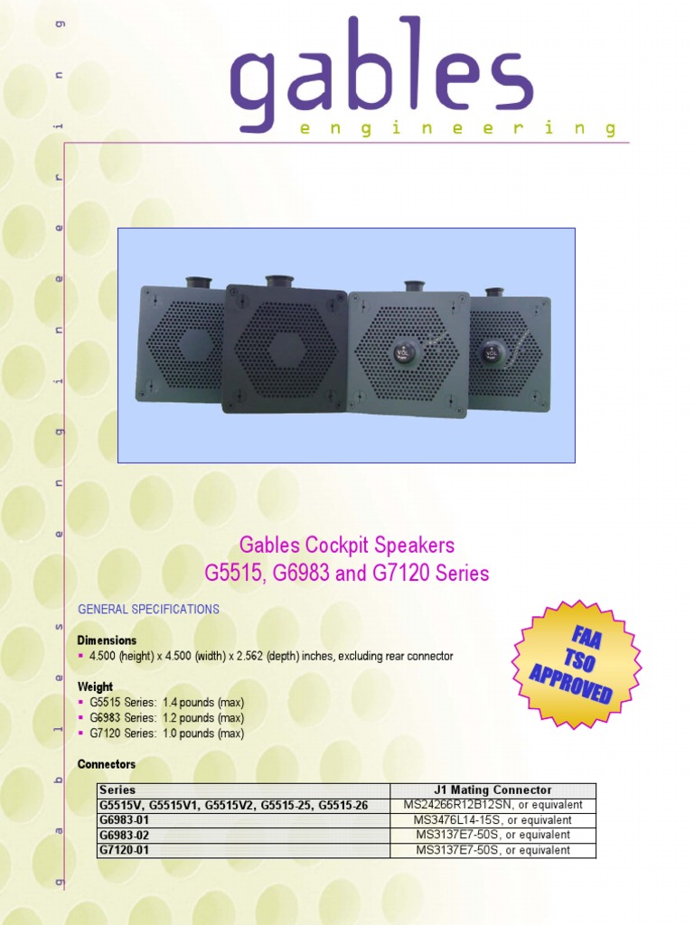 Gables Cockpit Speakers G5515, G6983 and G7120 Series