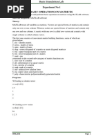 Where r1 and r2 specify the beginning and ending rows and c1 and c2 specify the beginning and ending columns to be extracted to make the new matrix. A column vector can beextracted from a matrix. As an example we create a matrix below: matrix=[1,2,3;4,5,6;7,8,9] matrix = 123 456 789 Here we extract column 2 of the matrix and make a column vector: col_two=matrix( : , 2) col_two = 258 A row vector can be extracted from a matrix. As an example we create a matrix below: matrix=[1,2,3;4,5,6;7,8,9] matrix = 123 456 789 Here we extract row 2 of the matrix and make a row vector. Note that the 2:2 specifies the second row and the 1:3 specifies which columns of the row. rowvec=matrix(2 : 2 , 1 :3) rowvec =4 5 6 a=3; b=[1, 2, 3;4, 5, 6] b= 123 456 c= b+a % Add a to each element of b c= 456 789 Scalar - Matrix Subtraction a=3; b=[1, 2, 3;4, 5, 6] b= 123 456 c = b - a %Subtract a from each element of b c= -2 -1 0 123 Scalar - Matrix Multiplication a=3;