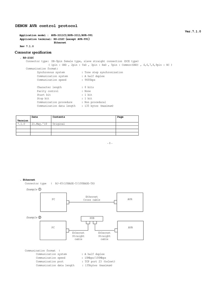 Application model : AVR-3311CI/AVR-3311/AVR-991 Application terminal: RS-232Cexcept AVR-991 Ethernet Rev 7.1.0