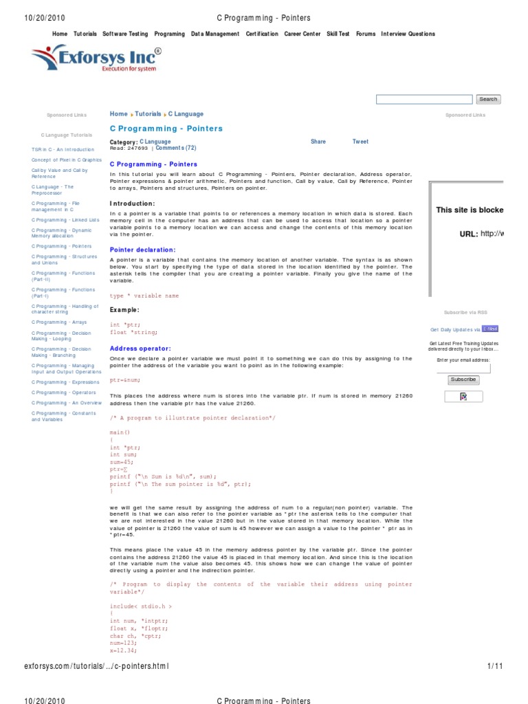 A afi said: Good tutorial. One c an also refer Pointers in C by Yeshwant Kanetkar for pointers.