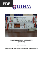 Aim of the Experiment: To study the V-I Characteristic of SCR using PEC16M1A. Apparatus Required: 1. PEC16M1A Trainer 2. Ammeter (0-200mA) MC 2Nos. 3. Voltmeter (0-30V) MC. 4. Patch chords Theory: An SCR is a type of rectifier, controlled by a logic gate signal. It is a four-layer, three-terminal device. A p-type layer acts as an anode and an n-type layer as a cathode; the p-type layer closer to the n-type (cathode) acts as a gate. In the normal "off" state, the device restricts current to the leakage current. When the gate to cathode voltage exceeds a certain threshold, the device turns "on" and conducts current. The device will remain in the "on" state even after gate current is removed so long as current through the device remains above the holding current. Once current falls below the holding current for an appropriate period of time, the device will switch "OFF". If the applied voltage increases rapidly enough, capacitive coupling may induce enough charge into the gate to trigger the device into the "on" state; this is referred to as "dv/dt triggering." This is usually prevented by limiting the rate of voltage rise across the device, perhaps by using a snubber. "dv/dt triggering" may not switch the SCR into full conduction rapidly and the partially-triggered SCR may dissipate more power than is usual, possibly harming the device. SCRs can also be triggered by increasing the forward voltage beyond their rated breakdown voltage (also called as break over voltage), but again, this does not rapidly switch the entire device into conduction and so may be harmful so this mode of operation is also usually avoided. Also, the actual breakdown voltage may be substantially higher than the rated breakdown voltage, so the exact trigger point will vary from device to device. SCRs are made with voltage ratings of up to 7500 volts, and with current ratings up to 3000 RMS amperes per device. Some of the larger ones can take over 50 kA in single-pulse operation. SCRs are