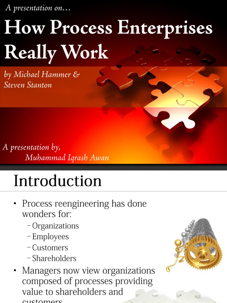 A presentation of the article "How process enterprises really work" by Michael Hammer & Steven Stanton given by Muhammad Iqrash Awan