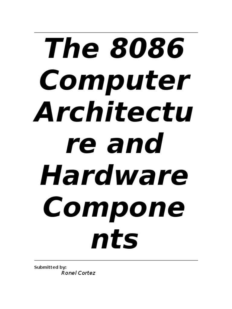 FIVE BASIC UNITS OF A MICROCOMPUTER SYSTEM Arithmetic Logic Unit (ALU) - performs arithmetic operations such as addition, subtraction, multiplication, and or division, and logical operation such as AND, OR, NOT and XOR needed to carry out the instructions. Control Unit (CU) - responsible for fetching instructions from main memory and determining their type. Memory Unit (MU) * - used to store information such as number or character data. Input Unit (IU) - used to input the information to be processed from external input device such as a card reader, keyboard, or switch. Output Unit (OU) - used to output the processed results of computer to the external output devices such as a printer, monitor, 7- segment display, and LED. MEMORY UNIT Primary Storage Memory RAM (Random-Access Memory) - By using RAM, the information is made volatile; that is, the information is lost if power is turned off. ROM (Read-Only Memory) - By using ROM, the information is made nonvolatile; that is, the information is not lost if power is turned off. BUS collection of wires used to transmit signals in parallel. THREE TYPES OF BUSES Address Bus - The unidirectional address bus transmits the address signals emitted from CPU to memory and I/O port. Data Bus - The signal on the bidirectional data bus is the data from CPU either to memory and I/O or from memory and I/O to CPU. Control Bus - used to transmit the control signals such as read, write, and interrupt control signal. *** 8086 ARCHITECTURE Memory Interface