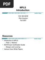For more to read about MPLS, there are the RFC and IETF draft documents. These are fairly readable, and can be found at the links at the beginning of this article. There are two books available: MPLS: Technology and Applications by Bruce S. Davie, Yakov Rekhter (Morgan Kaufmann Press): http://www.amazon.com/exec/obidos/ASIN/1558606564/ Multiprotocol Label Switching and Virtual Private Networks (Cisco Networking Fundamentals) by Ivan Pepelnjak, Jim Guichard (Cisco Press): http://www.amazon.com/exec/obidos/ASIN/1587050021/ The second is probably more focussed on MPLS as applied to VPNs, which is a fit topic for another article. (No outline online yet). You might also wish to look at the MPLS Forum: http://www.mplsforum.org , and MPLS Resource Center: http://www.mplsrc.com/ . This ought to get you thoroughly started. Cisco white paper: http://www.cisco.com/warp/public/cc/cisco/mkt/wan/ipatm/tech/mpls_wp.htm You might also look at the Cisco WAN switching documentation, which is actually a pretty good introduction to MPLS as well: http://www.cisco.com/univercd/cc/td/doc/product/wanbu/9_3/mpls/index.htm . If you have the bandwidth, pull the PDF file and skim the first two hundred pages. Cisco moved the link (as of 11/6/2001). The new link: http://www.cisco.com/univercd/cc/td/doc/product/wanbu/bpx8600/mpls/9_3_1/mpls.pdf Some good Cisco documentation links to get you started: http://www.cisco.com/univercd/cc/td/doc/product/software/ios121/121cgcr/switch_c/xcprt4/index.htm http://www.cisco.com/univercd/cc/td/doc/product/atm/c8540/wa5/12_0/3a_11/config/tag.htm http://www.cisco.com/univercd/cc/td/doc/product/software/ios121/121cgcr/switch_c/xcprt4/xcdtagc.htm http://www.cisco.com/univercd/cc/td/doc/product/software/ios121/121cgcr/switch_r/index.htm If you're wondering how to configure MPLS, well, turning on basic MPLS isn't that complicated. (Understanding it, well that's all clear now, isn't it?) We may look at basic configuration, and also at the fancier aspects of MPLS in one or more future articles. Fancier MPLS includes: QoS (CoS) with MPLS, also Traffic Engineering and VPNs.