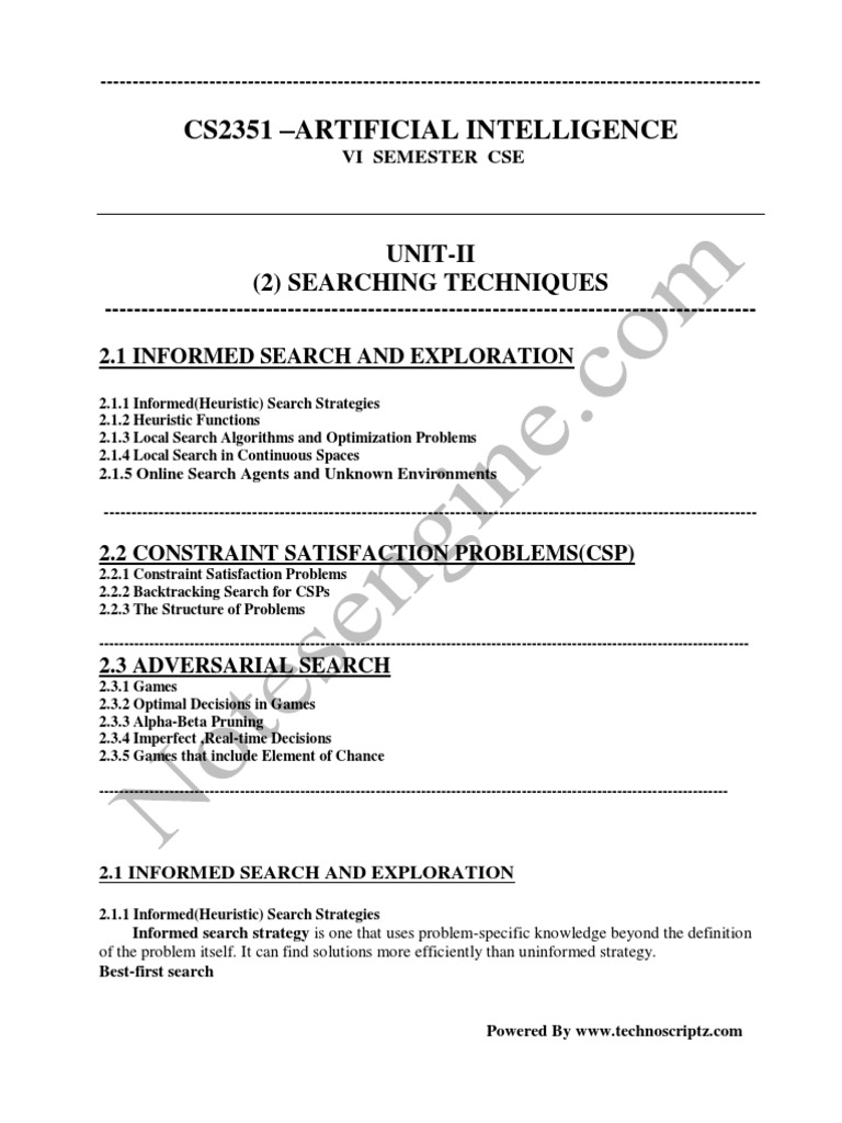 Informed search strategy is one that uses problem-specific knowledge beyond the definition of the problem itself. It can find solutions more efficiently than uninformed strategy. Best-first search