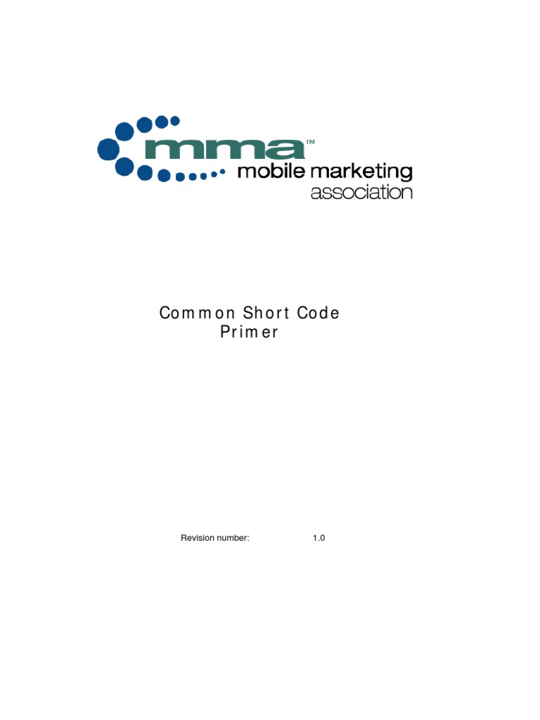 Mobile Marketing Association, June 2006 Version 1.0 Soft copy available at: http://www.mmaglobal.com/shortcodeprimer.pdf