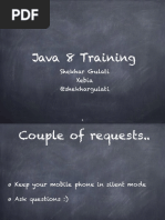 Write a program to check whether two strings are equal or not. Write a program to display reverse string. Write a program to find the sum of digits of a given number. Write a program to display a multiplication table. Write a program to display all prime numbers between 1 to 1000. Write a program to insert element in existing array. Write a program to sort existing array Write a program to create object for TreeSet and Stack and use all methods. Write a program to check all the math class functions. Write a program to execute any Windows 95 application (like notepad calculator etc). Write a program to find the total memory, free memory and free memory after executing garbage collection (gc()). Write a program to copy a file to another file using java.io package classes. Get the file names at run time and if the target file existed then ask confirmation to overwrite and take necessary actions. Write a program to get a file name at run time and display number of lines and words in that file. Write a program to list files in the current working directory depending upon a given pattern. Create a Text field that allows numeric value and in specified length. Create a Frame with two labels at runtime display X and Y co-ordinates of mouse pointer in the labels. Create a Frame and Checkbox group with five Checkbox with Label as green, red, blue, yellow and white. At run time change the background color with appropriate selection of the Checkbox. Create a Frame, Choice and Label. Add five items in the choice. At runtime display selected items of choice in the label. Create a Frame with three Scrolls; change the background Color of the Frame using function with value of Scrolls. Create a Message Dialog Box like Windows 95 Message Box. At runtime pass message for that Message Box. 1