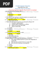 MULTIPLE CHOICE 1. CSMA stands for: a. Client-Server Multi-Access b. Carrier Sense Multiple Access ANS: B 2. The CD in CSMA/CD stands for: a. Carrier Detection b. Carrier Delay ANS: C 3. The Internet is: a. a network of networks b. a very large client-server network ANS: A 4. Most LANs: a. are based on Ethernet b. use CSMA/CD ANS: D 5. Dumb terminals are still used: a. in token-passing networks b. in networks requiring central monitoring c. in networks that cannot provide central monitoring d. none of the above ANS: B 6. In a circuit-switched network: a. communication is half-duplex only b. each channel carries only one data stream c. connection is usually done using a bus topology d. all of the above ANS: B 7. Each computer on a network is called a: a. hub b. token ANS: C 8. Compared to CSMA/CD systems, token-passing rings are: a. slower c. not as widely used c. node d. circuit c. use UTP cable d. all of the above c. a very large CSMA/CD network d. not really a network at all c. Collision Detection d. Collision Delay c. Carrier Server Master Application d. none of the above