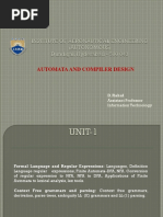 An alphabet or a character class is a finite set of symbols. Typical examples of symbols are letters and characters. The set {0, 1} is the binary alphabet. ASCII and EBCDIC are two examples of computer alphabets. Strings A string over some alphabet is a finite sequence of symbol taken from that alphabet. For example, banana is a sequence of six symbols (i.e., string of length six) taken from ASCII computer alphabet. The empty string denoted by , is a special string with zero symbols (i.e., string length is 0). If x and y are two strings, then the concatenation of x and y, written xy, is the string formed by appending y to x. For example, If x = dog and y = house, then xy = doghouse. For empty string, , we have S = S = S. String exponentiation concatenates a string with itself a given number of times: S2 = SS or S.S S3 = SSS or S.S.S S4 = SSSS or S.S.S.S and so on By definition S0 is an empty string, , and S` = S. For example, if x =ba and na then xy2 = banana.