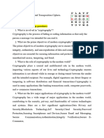 There are hundreds of types of cipher systems ranging from very simple paper-andpencil systems to very complex cipher machine or computer enciphered systems. These can be categorized as either transposition or substitution or a combination of the two. a. Transposition. In a transposition system, the plaintext characters of a message are systematically rearranged. After transposing a message, the same characters are still present, but the order of the letters is changed. b. Substitution. In a substitution system, the plaintext characters of a message are systematically replaced by other characters. After the substitution takes place, the order of the underlying plaintext is unchanged, but the same characters are no longer present. In the simplest substitution systems, the replacement is consistent; a given plaintext character always receives the same replacement character or characters. More secure systems change the replacements so that the equivalents change each time the same character is encrypted. 1-9.