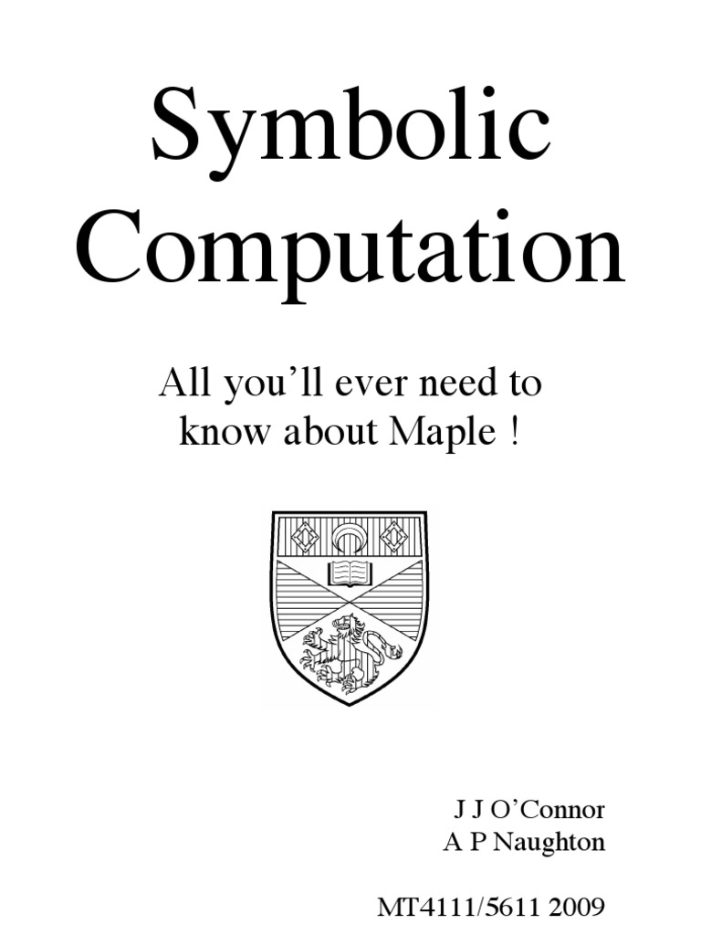 Using Maple as a calculator Help Polynomial expressions Trigonometric expressions Assigning Substituting Differentiating Defining functions Formatting worksheets Plotting Plotting in 3 dimensions Integration Solving equations Looping If clauses Lists Sets Summing Procedures More procedures Reversing Pythagorean triples Some more equations Interpolation More plotting 2 4 5 6 7 9 11 12 13 14 18 22 26 32 34 35 37 38 40 45 46 49 49 51 52 Recursion More recursion Looking for prime numbers Testing for primes Linear algebra package The Power method Solving differential equations DEtools package Other methods Random numbers Shuffling Sudoku Countdown Sums of two squares Number of different ways Continued fractions Geometry package: Menelaus Ceva's theorem Product of chords Ptolemy's theorem Pascal's theorem The Euler line The Nine-point circle Summaries Mathematicians' pictures 55 57 58 62 63 69 73 75 78 79 82 84 86 90 91 93 97 99 100 102 103 104 107 109 118
