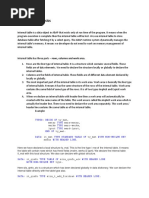 By definition, internal tables are user defined structured data types. These internal tables can be created as a replica of data base table, using some or all fields of one table or more tables. These internal tables are created only during run time no memory is reserved. Why we need internal table Long life data is stored in database tables when we are directly modifying data there is every possibility that we may loose data by accident, which we can not afford to do so, As such we need some intermediate etc tables to do some operations upon satisfactory results, we can modify database tables. Defining Internal Tables: Internal table with header line: When we create internal table with header line, a default work area is created. Internal table with out header line: In this case, we need to create explicit work area to work with it. When we need to nest the tables with in tables, we need to use this type of internal table. Types of internal tables 1. Standard tables: - Standard tables have an internal linear index. The system can access records either by using the table index or the key. The response time for key access is proportional to the number of entries in the tables. The key of standard table is always non-unique. Standard tables can always be filled very quickly, since the system does not have to check whether there are already existing entries. Key access to a standard table uses a linear search. This means that the time required for a search is in linear relation to the number of table entries. You should use index operations to access standard tables. 2. Sorted Tables: - Defines the tables as one that is always saved correctly sorted by key. The system can access records either by using the table index or the key. The response time for key access is logarithmically proportional to the number of table entries, since the system uses a binary search. The key of a sorted table can be either unique or non-unique. If the key is not unique, the system takes the entry with the lowest index. The runtime required for key access is logarithmically related to the number of table entries. 3. Hashed tables: - Hashed tables have no linear index. Hashed table is accessed using its key. The response time is independent of the number of table entries and is constant, since the system accesses the table entries using a hash algorithm. The key of a hashed table must be unique. Defines the tables as one that is managed with an internal hash procedure. You can only access a hashed table using the generic key operations or other generic operations (sort, loop and so on) Explicit or implicit index operations (such as loop... from and insert itab with in and loop) are not