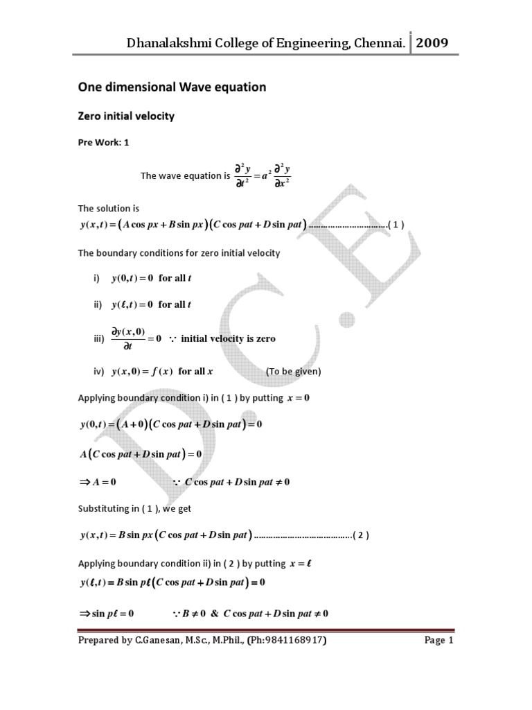 Now applying condition iv) in above by putting t = 0 , we get. Prepared by C.Ganesan, M.Sc., M.Phil., (Ph:9841168917) Page 4