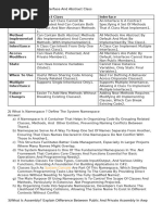 Namespaces have to be mentioned Assemblies need not be explicitly in Project-Properties. specified. They are automatically described in metadata and manifest files. Namespaces can be nested. For Such nesting is not permissible in example: assemblies. namespace sampleApp1 { namespace SampleApp2 { class sampleClass { } } } Namespace is the one which you directly specify in your code. A simple example for namespace is shown below: namespace sampleNamespace { class sampleClass { public void displayMsg() { Console.WriteLine("In sampleClass"); } } } Creating an assembly on your own is not as simple as you create a namespace. If you want to package the code shown as an example for the namespace into an assembly, then you have to follow the steps shown below: " Generate a key file inside the same folder where you have placed the code by typing the following statement in the command prompt: sn -k sampleKey.key " Sign your code component with this