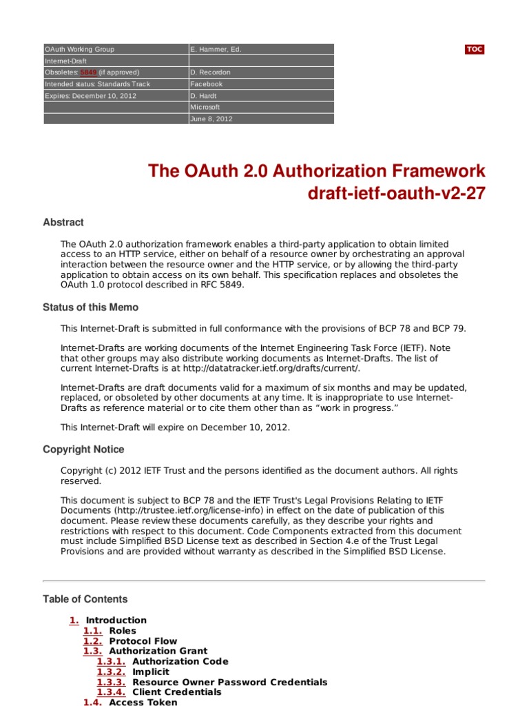 The Oauth 2.0 Authorization Framework Draft-Ietf-Oauth-V2-27