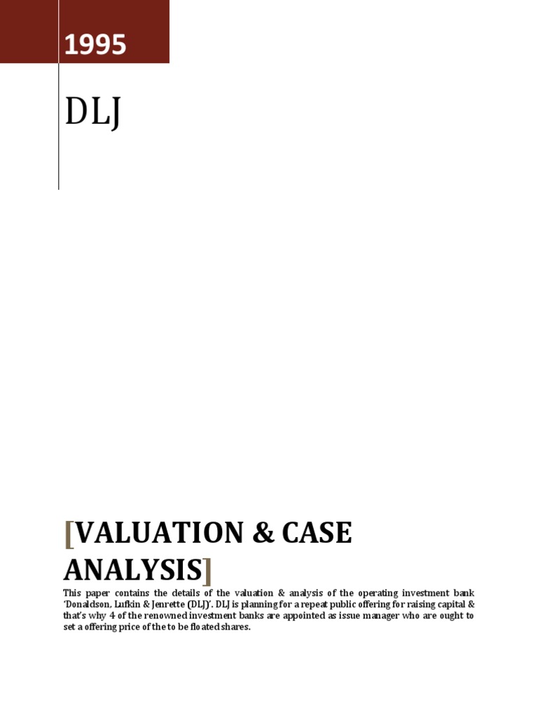 We have put our best effort to make this report to serve its purpose; that is, to analyze & valuate the upcoming IPO offering of Donaldson, Lufkin & Jenrette (DLJ). We had to surf around the case for different issues at times & had to gather some information for the analysis from the internet as well.