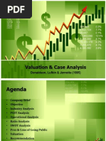 Donaldson, Lufkin & Jenrette, Inc. (DLJ) grew in a single generation from its founding to become one of the top ten U.S. investment-banking firms. DLJ also trades on its own account as a merchant banker. A holding company, DLJ also acts as a full-service securities broker, managing assets, clearing transactions, and providing financial research and advice as well as trust services to its clients. In 1995 one survey ranked DLJ second among 19 firms in the quality of its research. In 1996 it was rated as the leading underwriter of high-yield bonds and fourth as lead underwriter of domestic public issues. Although publicly traded, DLJ was 80 percent owned by The Equitable Cos. Inc. in 1997. William H. Donaldson and Dan W. Lufkin were former Yale and Harvard Business School classmates who were rooming together while working on Wall Street in 1959, when they decided to go into business for themselves as analysts researching stocks. They asked a colleague, Richard H. Jenrette-also a Harvard Business School classmate--to join them and raised $500,000 to $600,000 in startup cash and collateral, buying a seat on the New York Stock Exchange and opening a small office with a staff of three. "There wasn't much downside risk since we were all bachelors," Jenrette later recalled, "and we weren't earning that much, no more than $7,000 or $8,000 a year." Each brought distinct skills to the partnership: the dynamic Lufkin excelled at recruiting clients, Donaldson was the "deal" man, and Jenrette gravitated toward administration while also heading a small investment-counseling unit. In 1962, however, Donaldson took over investment banking and administration while Jenrette became head of research. The partners sought as clients - institutional investors such as banks, mutual and pension funds, and insurance companies, rather than the general public. They made their early reputation with reports on small but promising growth companies for which they hoped to be repaid in brokerage commissions. A survey of DLJ's 51 basic recommendations during 1960-63 found it beating the Dow Jones industrial average by more than 50 percent, at least according to the firm's own reckoning. Most of its buy recommendations were companies with new products or services. By 1964, the firm had established a corporate pension-fund department and was targeting wealthy individual investors. It also entered investment banking by placing $10 million in debentures for companies and setting up a merger between W.R. Grace & Co. and DuBois Chemicals. In 1967, DLJ made the largest single transaction ever in dollar value on the New York Stock Exchange--a $22.55-million trade of Harvey Aluminum Inc. common stock. Then, in 1970, DLJ shook up the financial establishment by becoming the first New York Stock Exchange member to offer its equity securities to the public, in contravention of the exchange's regulations. The firm, which raised about $11 million in this manner, established a holding company that was exempted from the stock exchange's restraints on member firms. Going public also allowed DLJ to acquire an assortment of firms unrelated to its core business, such as the pollster Louis Harris & Associates, Inc. and Meridian Investment and Development Corp., a home builder. The three partners remained the firm's largest single stockholders. # Valuation & Detailed Analysis of Donaldson, Lufkin & Jenrette (DLJ) # Page | 9