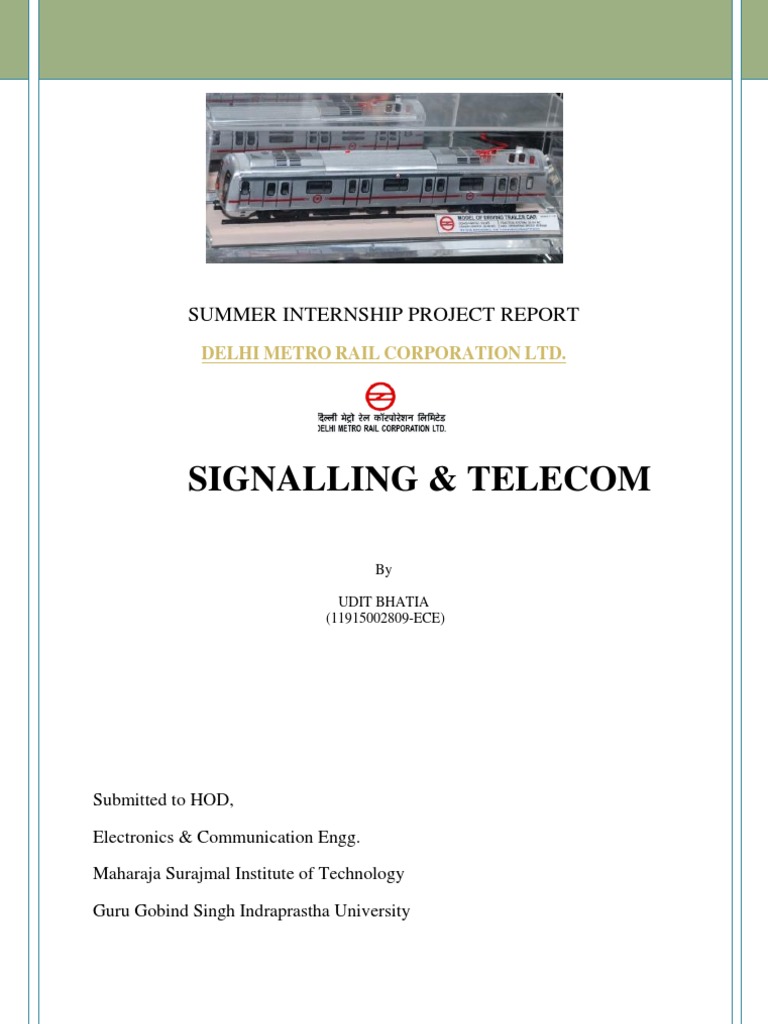 Submitted to HOD, Electronics & Communication Engg. Maharaja Surajmal Institute of Technology Guru Gobind Singh Indraprastha University