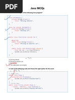declared. D. i may only be accessed within the class in which it is declared. 6. What is wrong with the following program? class Question { String s = "abc"; public static void main(String[] args) { System.out.println(s); } } A. Nothing is wrong with the program. B. main() cannot be declared public because Question is not public. C. Because main() is static, it may not access non-static s without a reference to an instance of Question. D. The main() argument list is incorrect. 7. Which of the following are true? A. A top-level class may be declared as private. B. A method may be declared as transient. C. A constructor may be declared as volatile. D. A local variable may be declared as final. 8. What is the output of the following program? class Question { static int i = 1; static { ++i; } public static void main(String[] args) { increment(i,5); display(i); } static void increment(int n, int m) { n += m; } static void display(int n) { System.out.print(n); } static { ++i; } } A. 1 B. 3 C. 6 D. 7 9. Which of the following are true? A. Local variables may be declared final. B. Methods may be declared final. C. Constructors may not be declared private. D. transient variables may not be serialized.