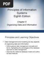 Chapter 5 gives the student insight into how an organization uses data and transforms it into meaningful information. Most businesses suffer from too much rather than not enough data, and a typical manager will encounter a flurry of numbers, statistics, and reports. A database helps extract significance from these numbers. Traditionally, data was maintained in separate files that were created by separate applications. The database approach to data management offers many advantages over the traditional approach to data management, including reduced data dependency, easier update and modification, reduced redundancy, standardization of data access, and more efficient program development. Use of the database approach has required computer specialists to give extra care to content and access, logical structure, and physical organization of data. The result can be a well-designed and well-managed database that is an extremely valuable tool in supporting decision making. Most frequently, this is done through the use of a database management system (DBMS).