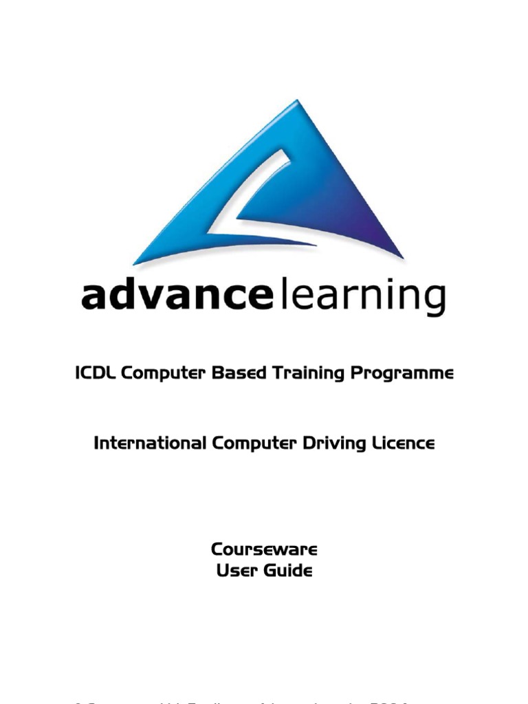 Advance Learning is a successful and highly-regarded education and elearning company. We provide technologically advanced products, including courseware, computer-based learning tools, and professional services that are designed to enhance our clients' personal and professional lives and productivity. This Advance Learning course caters for anybody wishing to prepare for the ICDL exam. The core element of Advance Learning's ICDL CBT programme is the CD-ROM, which contains the main content of this course. This User Guide complements and supports the CD-ROM. It works on three levels. First, it describes the background and history of the ICDL, and explains how to go about getting your certification. Second, it provides instructions for running the CD-ROM, and getting the most out of the course. It also introduces the basics of a computer screen and the physical components you need to use to operate your computer. Finally, it acts as a guide to this course: it details the ICDL syllabus featured in the course, and lists and explains the several hundred technical terms that you will meet in this course. We hope that you enjoy this Advance Learning product and that you have a rewarding learning experience. If you'd like to find out more about our company or our products, visit us at our Web site, www.advancelearning.com