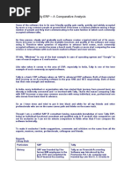 Introduction Tally Solutions has been in the business of providing complete business solutions for over 20 years to MSME (Micro, Small and Medium Enterprise) and to a large extent for LE (Large Enterprise) businesses. With over 3 million users in over 100 countries Tally, the flagship product continues to be the preferred IT solution for a majority of businesses every year. Tally the flagship product (which started as a simple bookkeeping system, 20 years ago), is today a comprehensive, integrated solution covering several business aspects of an enterprise. These include Accounting, Finance Management, Receivables/Payables, Inventory Accounting, Inventory Management, BoM based manufacturing inventory, multi-location/multi-currency\multiunit handling, Budgets and Controls, Cost and Profit Centres, Job Costing, POS, Group Company consolidations, Statutory Taxes (Excise, VAT, CST, TDS, TCS, FBT, etc), Payroll Accounting, and other major and minor capabilities. It has served as an ERP for small enterprises over the past 12 years. With the introduction of Remote Access, Remote Authentication, Support Centre, Central Administration and Account Management inherently supported in the product it can be formally labeled as Tally.ERP 9. With this capability, it is possible that the owner or an authorized user will be able to access all the reports and information from a remote location. With each forthcoming release subsequent to Tally.ERP 9 Release 3, additional capabilities will be delivered to cater to large business enterprises. The major functional areas in Tally are: Order to Payment (Purchase Processes) Simple (Cash Purchase) to Advanced Purchase Processes - including Ordering, Receipting, Rejections, Discounts, etc. Order to Receipt (Sales Processes) Simple (Cash Sales) to Advanced Sales Processes - including Orders Received, Delivery, Invoicing, Rejections and Receipting, POS Invoicing at Retail. Material to Material (Manufacturing Processes) Simple to Multi-step material transformations, Discrete and Process Industry cycles, Work in progress and valuations.