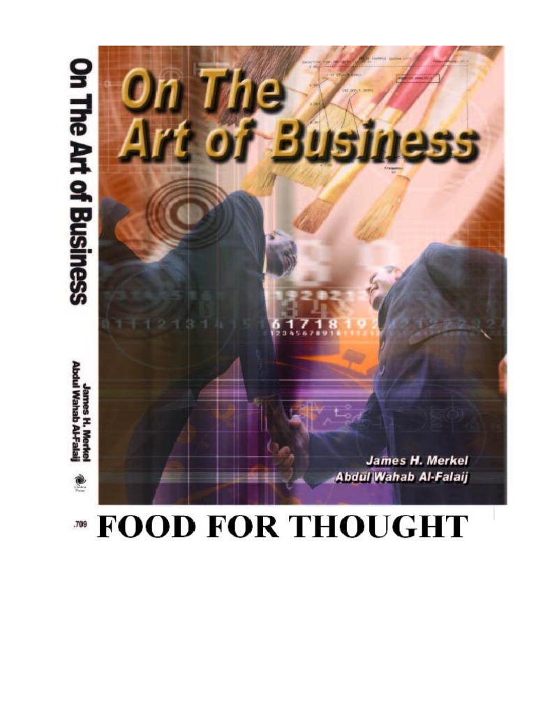 Copyright 2003 Abdul Wahab Alfalaij and James Howard Merkel THE KINGDOM OF BAHRAIN MINISTRY OF INFORMATION DIRECTORATE OF PUBLICATIONS & PRESS Ref. License of Printing & Publishing a Book Reference No. at the Author's Rights Bureau: 922/2003 Reference No. at the Directorate of Public Libraries at Ministry of Education : 3501 D.A./2002 ISBN : 99901-552-0-8 Type of Classifier : Scientific - Economic deals with principles of art of commerce and business which may lead to wealth. All rights reserved. No part of this publication may be reproduced or transmitted in any form or by any means electronic or mechanical, including photocopy, recording, or any information storage and retrieval system, without permission in writing from both the copyright owner and the publisher. Requests for permission to make copies of any part of this work should be mailed to Food For Thought Production, Permission Department, 19134 San Jose Ave., Industry, Ca 91748 ISBN 0-9754714-0-6 INTERNATIONAL FIRST Edition