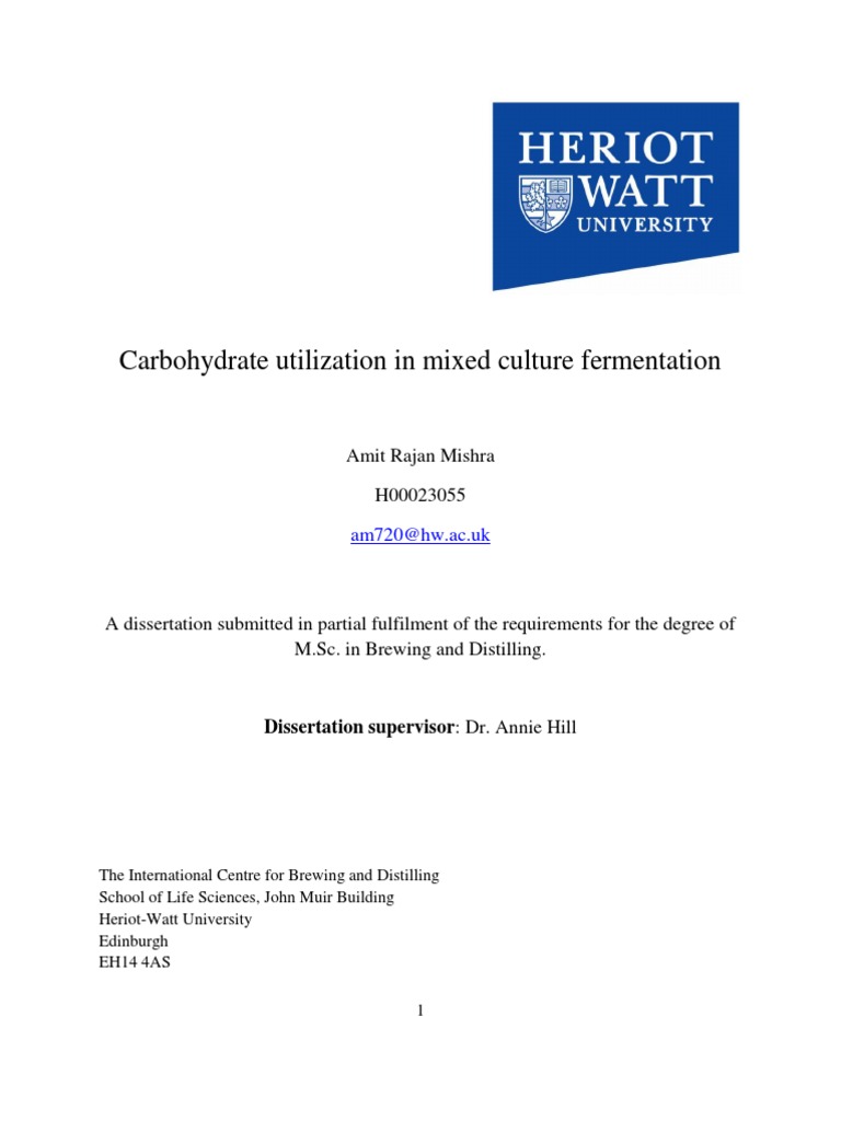 A dissertation submitted in partial fulfilment of the requirements for the degree of M.Sc. in Brewing and Distilling.