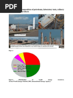 the column, with special trays called draw-off trays, fractions can be drawn out on gravity through pipes, for further processing in the refinery At top of the column, vapours leave through a pipe and are routed to an overhead condenser, typically cooled by 0 air fin-fans. At the outlet of the overhead condensers, at temperature about 40 C, a mixture of gas, and liquid naphtha exists, which is falling into an overhead accumulator. Gases are routed to a compressor for further recovery of LPG (C3/C4), while the liquids (gasoline) are pumped to a hydrotreater unit for sulfur removal. A fractionation column needs a flow of condensing liquid downwards in order to provide a driving force for separation between light and heavy fractions. At the top of the column this liquid flow is provided by pumping a stream back from the overhead accumulator into the column. Unfortunately, a lot of the heat provided by the furnace to vaporise hydrocarbons is lost against ambient air in the overhead fin-fan coolers. A clever way of preventing this heat lost of condensing hydrocarbons is done via the circulating refluxes of the column. In a circulating reflux, a hot side draw-off from the column is pumped through a series of heat exchangers (against crude for instance), where the stream is cooled down. The cool stream is sent back into the column at a higher elevation, where it is been brought in contact with hotter rising vapours. This provides an internal condensing mechanism inside the column, in a similar way as the top reflux does which is sent back from the overhead accumulator. The main objective of a circulating reflux therefore is to recover heat from condensing vapours. A fractionating column will have several (typically three) of such refluxes, each providing sufficient liquid flow down the corresponding section of the column. An additional advantage of having circulating refluxes is that it will reduce the vapour load when going upwards in the column. This provided the opportunity to have a smaller column diameter for top sections of the tower. Such a reduction in diameter is called a 'swage'. The lightest side draw-off from the fractionating column is a fraction called kerosene, boiling in the range 160 0 280 C, which falls down through a pipe into a smaller column called 'side-stripper'. The purpose of the side stripper is to remove very light hydrocarbons by using steam injection or an external heater called 'reboiler'. The stripping steam rate, or reboiled duty is controlled such as to meet the flashpoint specification of the product. Similarly to the atmospheric column, the side stripper has fractionating trays for providing contact between vapour and liquid. The vapours produced from the top of the side stripper are routed back via pipe into the fractionating column. The second and third (optional) side draw-offs from the main fractionating column are gasoil fractions, boiling in 0 the range 200 - 400 C, which are ultimately used for blending the final diesel product. Similar as with the kerosene product, the gasoil fractions (light and heavy gasoil) are first sent to a side stripper before being routed to further treating units. At the bottom of the fractionation column a heavy, brown/black coloured fraction called residue is drawn off. In order to strip all light hydrocarbons from this fraction properly, the bottom section of the column is equipped with a set of stripping trays, which are operated by injecting some stripping steam (1 - 3% on bottom product) into the bottom of the column.