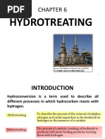 The objective of the Hydrotreating prococess is to remove suplur as well as other unwanted compunds, e.g. unsaturated hydrocarbons, nitrogen from refinery process streams. Until the end of World War 2, there was little incentive for the oil industry to pay significant attention to improving product quality by hydrogen treatment. However, soon after the war the production of high sulphur crudes increased significantly, which gave a more stringent demand on the product blending flexibility of refineries, and the marketing specifications for the products became tighter, largely due to environmental considerations. Furthermore, the catalyst used in the Platforming process can only handle sulfur in the very low ppm level, so hydrotreating of naphtha became a must. The necessity for hydrotreating of middle distillates (kerosene/gasoil) originates from pressure to reduce sulfur emissions into the environment. Overall, this situation resulted in an increased necessity for high sulphur removal capability in many refineries. As catalytic reforming gives hydrogen as a byproduct, it gave additional momentum to the development of sulphur removal process by hydrogen treatment. In this treatment, the sulphur compounds are removed by converting them into hydrogen sulphide by reaction with hydrogen in the presence of a catalyst. This results in high liquid product yields, since only sulphur is removed. Furthermore, the hydrogen sulphide produced can be easily removed from the product gas stream, for example by an amine wash. In this way, hydrogen sulphide is recovered as a higly concentrated stream and can be further converted into elemental sulphur via the "Claus" process. Hydrodesulphursiation has been extensively used commercially for treating naphtha as feedstock for catalytic reformers to meet the very stringent sulphuir specification of less than 1 ppm wt to protect the platinum catalyst. It