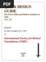 Preface This design guide was originally prepared for a short course presented by the author and Kevin M. McNeill, P.E., of D&B Engineering Contractors, Inc., on August 3, 2000, in conjunction with the GeoDenver 2000 Geotechnical Engineering Conference sponsored by the American Society of Civil Engineers. This Fourth Edition is an update of the Third Edition published in June, 2004. The material presented herein is the result of the authors experience and knowledge in designing, specifying, installing, inspecting, and monitoring performance of helical piles and tension anchors since 1986. Much of the authors experience is with helical piles and tension anchors manufactured by Hubbell/Chance. Since 2005, experience has also been with helical piles and helical tension anchors manufactured by International Marketing & Research, Inc. (I.M.R.), Denver, Colorado, U.S.A., under the brand name HELI-PILE. This book is intended to be a practical design and inspection guide/reference for engineers and other foundation professionals. This design guide is the sole work of the author. No guarantee or warranty is expressed or implied by the author or I.M.R. As always, the information presented herein must be coupled with sound engineering judgment. The author acknowledges the contribution of Mr. Robert L. Jones, Chairman of I.M.R. and D&B Engineering Contractors, Denver. Without Mr. Jones assistance, this book would not have been possible. Mr. Jones is one of a select group of serious pioneers of helical pile technology in the world. His foresight has led his companies to the forefront in the field. Mr. Jones was the first in the world to use helical piles for the repair of failed lightly loaded residential foundations constructed on highly expansive clay soils. He is among the first in the world to seriously use helical piles for construction of new foundations of lightly loaded residential structures on highly expansive soils. Subdivisions of homes are now being constructed on helical piles. Multiple-story commercial structures with heavy loads are now constructed on helical screw piles, thanks largely to Mr. Jones persistence in showing the engineering and construction community that they work, even over the long haul. It is estimated that in the last 23 years D&B Engineering Contractors has installed nearly 200,000 helical screw piles in the Front Range area of Colorado. As of this writing, no properly designed and installed helical piles installed by D&B have failed. This is a credit to Mr. Jones demand for high quality control and his insistence on using correct procedures and materials by knowledgeable engineers and trained installation personnel. Mr. Jones has also been involved in countless helical pile and tension anchor projects throughout the Western United States with his manufacturing and distribution company, I.M.R., Inc. The author acknowledges the contributions of Dale Jones of D&B Engineering Contractors, Sammy Irvin of Foundation Specialists & Repair, and Jared Dalton, Richard Dalton, and Jim Dalton of Intermountain Helical Piers Corporation, all dedicated specialty helical pile installation contractors whose photographs and drawings of structures founded on helical piles and specialized helical pile installation equipment appear herein. John S. Pack, P.E., July, 2009